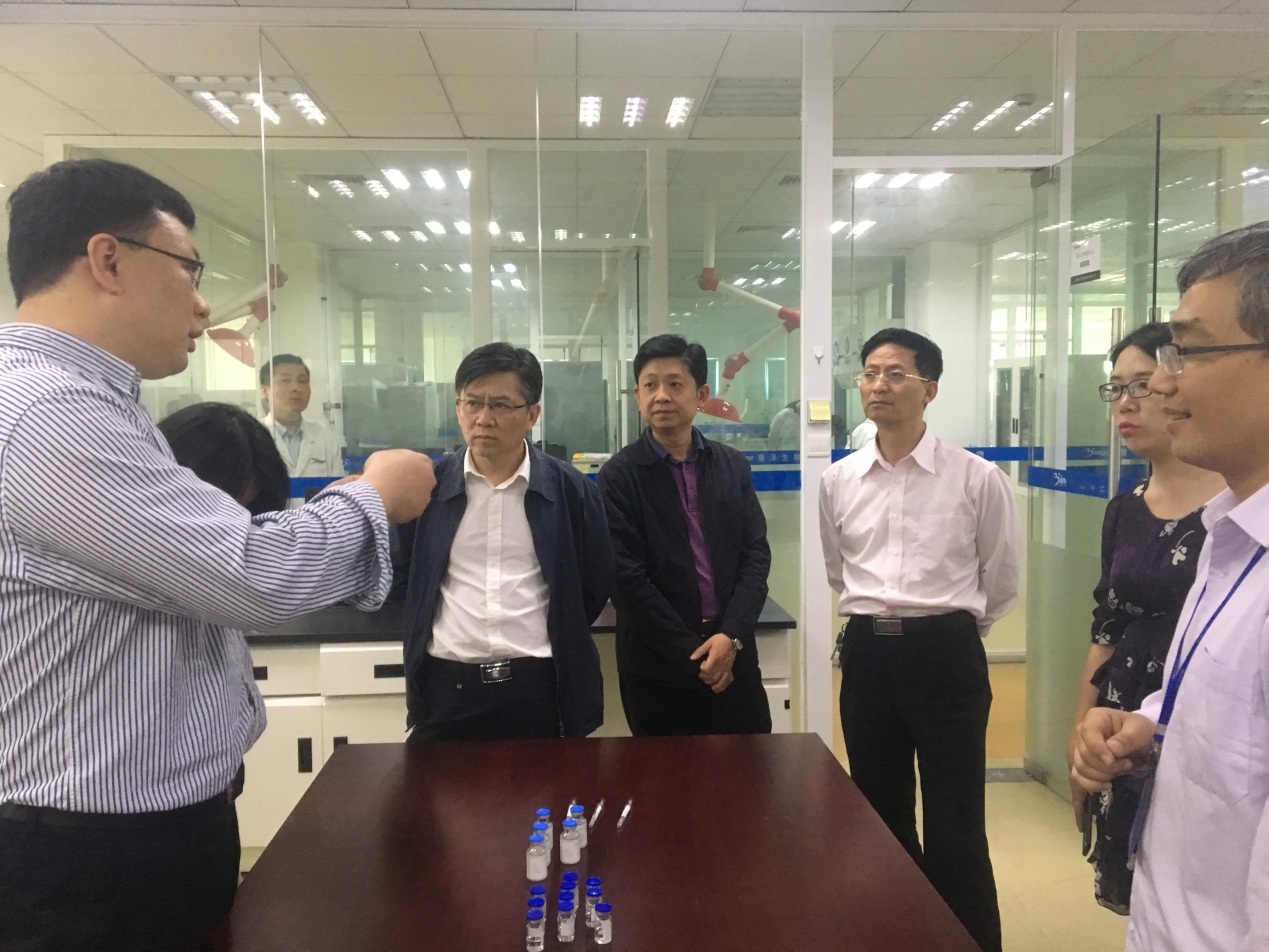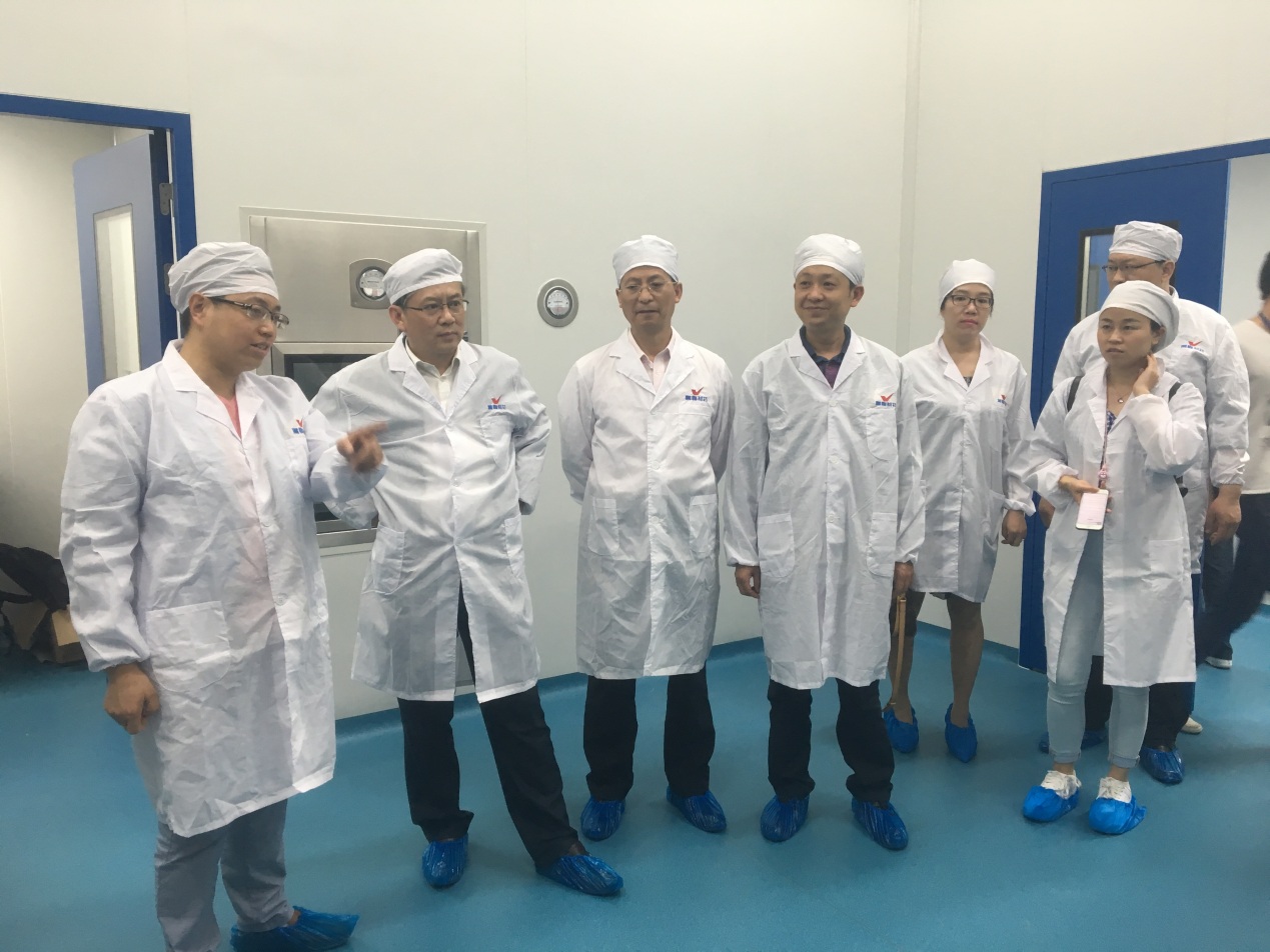 林副厅长一行首先参观了玻璃酸钠注射液生产车间以及生物药车间,马总对玻璃酸钠注射液的生产工艺及过程进行了详细解说介绍,并对生物药各个车间投入的高端设备、高端人才进行了重要介绍。随后马总、杨总带领考察团一行参观了景泽和方楠生物实验室、高端注射剂研发实验室,详细介绍了目前在研发产品及未来产品的研发方向。林副厅长一行对产品的投入、研发人才的学历占比、以及未来产品的收益情况都进行了详细的了解,马总表示目前研发的产品未来也将会在贵州景峰的生产线上进行生产,一方面希望届时得到贵州政府更多更好的支持,能够为贵州经济发展做出一份贡献,另一方面也表达了集团董事长兼总裁叶湘武先生对回馈家乡的浓厚情怀。